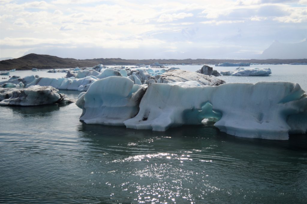 Continuamos hasta Jökulsárlón, una laguna en la que flotan icebergs que se desprenden del glaciar Vatnajökull. Es un lugar precioso y espectacular, pero a la vez una llamada de atención; hace 90 años esta laguna no existía y la lengua del glaciar llegaba hasta el mar, ahora hay 9 km desde la lengua del glaciar hasta la playa, el glaciar ha retrocedido 9 km en sólo 90 años… ?